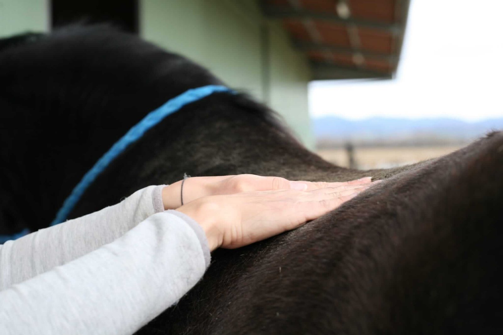 J’appose mes mains à distance ou au contact, selon les besoins du cheval, pour :